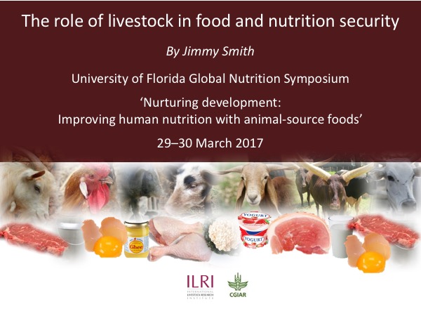 The keynote presentation by Jimmy Smith of ILRI, on the role of livestock in food and nutrition security, begins with a review of livestock and global food security issues.