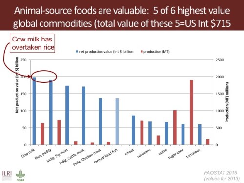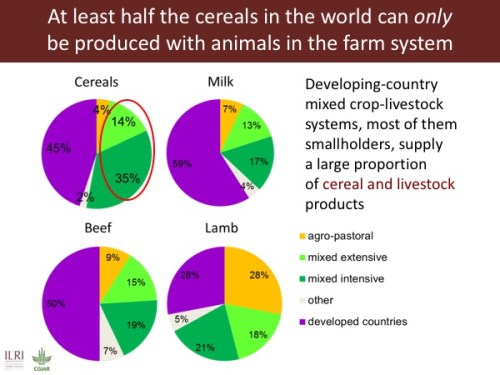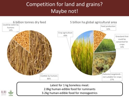 So the two bottom lines are, first, that production of livestock and animal-source foods in the developing world right now is not in serious competition with production of food crops.