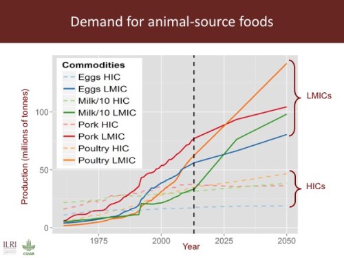 So we see that as incomes rise, as they are in developing countries, demand for animal-source foods is rising steeply.