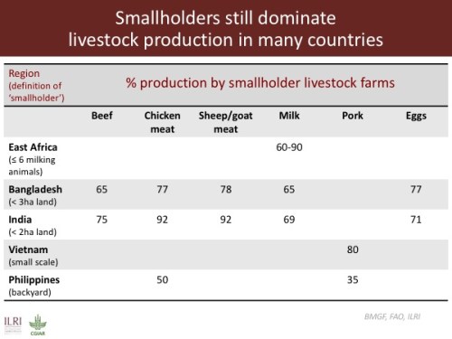 The opportunity here is not only for animal-source foods to contribute to food and nutritional security but also to enhance incomes. That’s because, as the figure above indicates, most of the production in the developing world remains in the hands of smallholders. This means that we have a great opportunity to link work on food and nutritional security with poverty reduction.