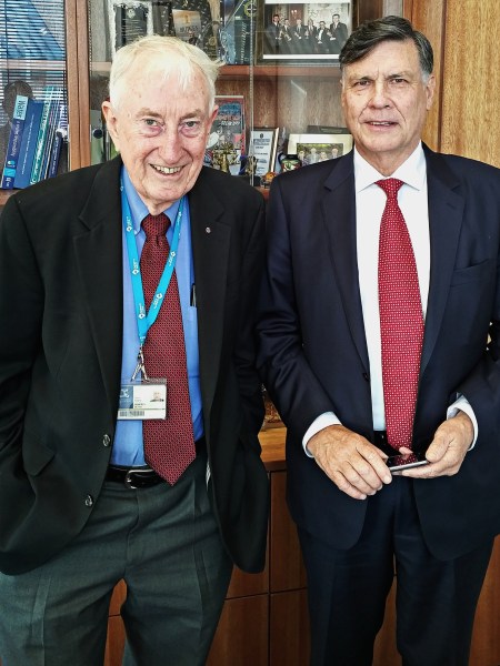 Australian Nobel laureate Peter Doherty (left), former chair of the program committee of the ILRI Board of Trustees, and Australian Lindsay Falvey, current chair of the ILRI Board of Trustees.