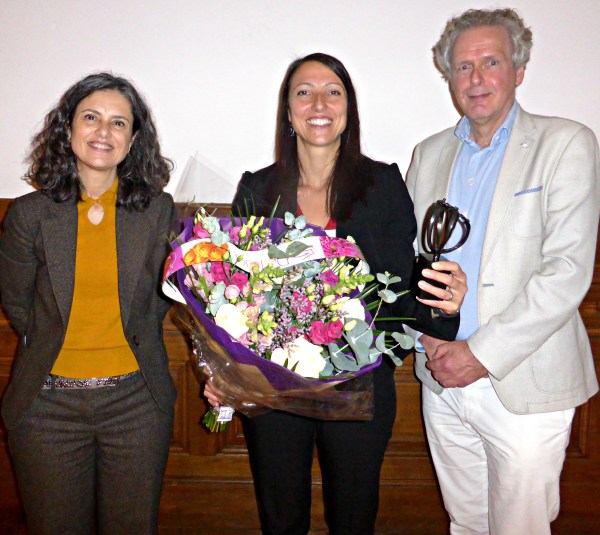 On 5 Dec 2017 Alessandra Galiè (centre) received the Elsevier Atlas award for publishing a research paper with outstanding potential for impacting people’s lives. She stands here with Elsevier associate publisher Virginia Prada López and Wageningen crop systems professor Paul Struik, one of Galiè’s co-authors and PhD supervisors (photo credit: CGIAR).