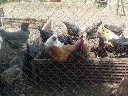 ‘These are my lovely local chickens. In my local area, these might be thought to be one year old, but these birds are just 3–4 months old. I spend nothing to feed my chickens. It’s my pigs that are doing this. And then at the end of the day I get very nutritious, very yellow-yolked, eggs.