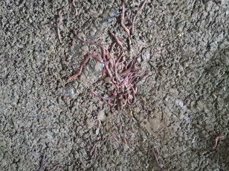 ‘These are earthworms. After we’ve collected all the maggots from the pig dung, we introduce earthworms and then they feed on the pig dung and reproduce and create soil, which I sell and make money from as well. The earthworms excrete a liquid that I use as a fertilizer and as a pesticide that repels aphids and nematodes. And of course the fish feed on the earthworms.