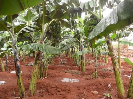 While the staple food of Germany may be sausages and pork, the staple food of my home is the cooking banana, called ‘matoke’, From this quarter of my farm I get about 30 bunches of banana. I put my manure on the plantation soil to produce those very big bunches. Before I came here last Saturday, I harvested a bunch of matoke that weighed 95 kilos. I sell the matoke for Uganda shillings 1,500 per kilo (so do the maths!).
