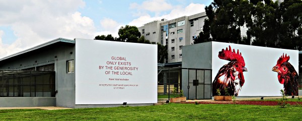 Artwork by Koen Vanmechelen adorns the new art + poultry facility on ILRI’s Addis Ababa campus (photo credit: ILRI/Koen Vanmechelen).