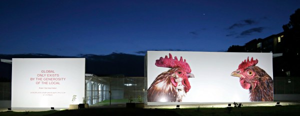 Vanmechelen’s Cosmopolitan Chicken installations have been featured in major exhibitions in galleries from New York to London. As part of the Incubated Worlds facility in Addis, Vanmechelen has installed large chicken portraits representing the diversity and heritage of his Cosmopolitan Chicken. Just inside the entrance, visitors will find two of Vanmechelen’s Book of Genomes. They include the genetic code, produced both in English and transcribed into Ethiopia’s Amharic language, of the first Ethiopian chicken to have its genome sequenced and the DNA code of the 20th generation of the Cosmopolitan Chicken. The book displays are enhanced by two accompanying video installations at the facility depicting a multitude of people reading the Ethiopian chicken’s genetic code in Amharic and that of the Cosmopolitan Chicken in a variety of other languages.