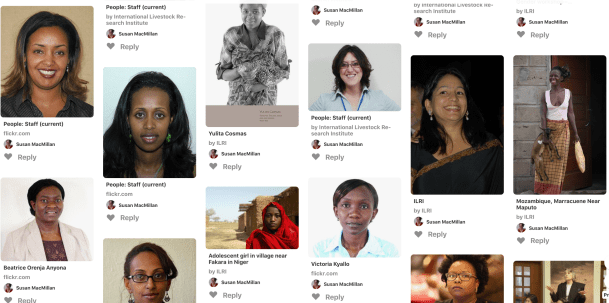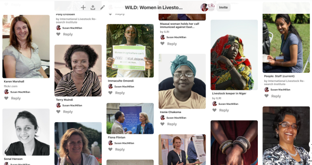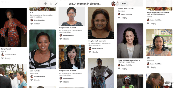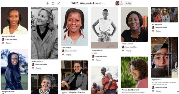 Screenshot 1 of the ILRI WILD Pinterest board on Women in Livestock Development created to celebrate International Women’s Day in 2019 (illustration credit: ILRI).