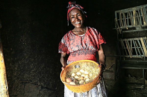 Ethiopian woman with the day’s eggs her chickens produced (photo credit: ILRI/Apollo Habtamu).