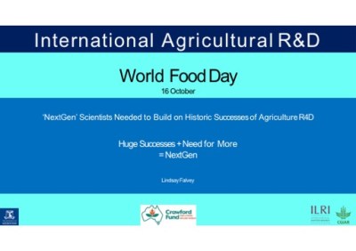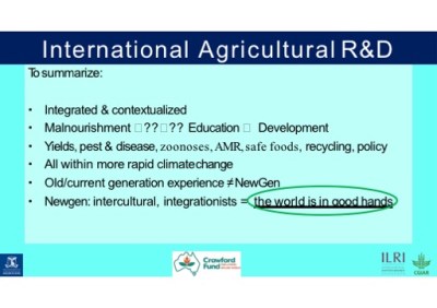 View the whole of Lindsay Falvey’s presentation: ‘NextGen’ scientists needed to build on historic successes of agriculture R4D, 16 Oct 2019.
