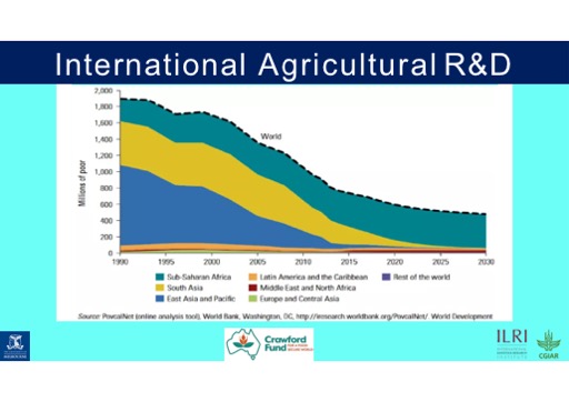 Lindsay also cited the reductions in the number of poor people in the world, due significantly to the products of international agricultural research over the years and the more recent rise in investments in agricultural research and development work in middle-income countries.