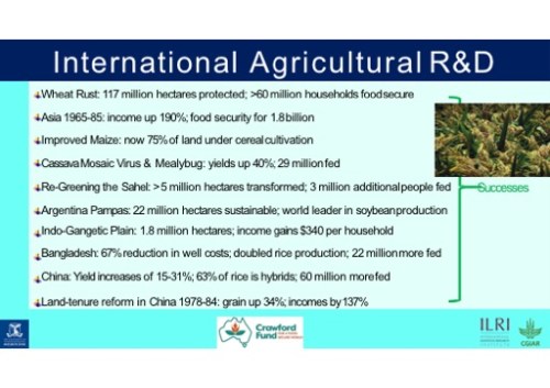 Australians can be proud, he said, for having been a consistent contributor to this major effort, including via international agricultural research centres—particularly those that form the CGIAR, a global research-for-development partnership working for a food-secure future.