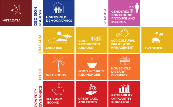 Furthermore, choosing suitable farm-level intervention options is challenging because different contexts require different recommendations and trade-offs can exist between different objectives, causing dilemmas between multiple household goals. These standardized data can be used to quantify on- and off-farm pathways to food security, diverse diets, and changes in poverty for rural smallholder farm households.