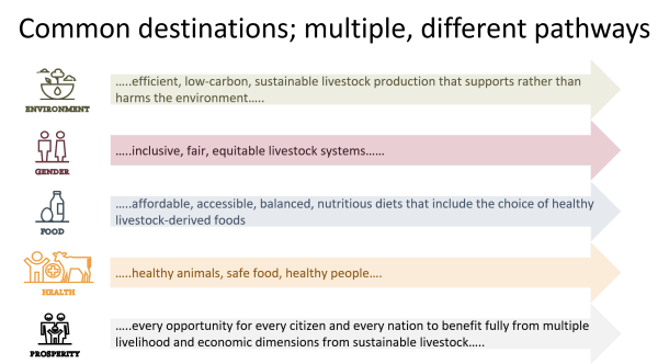 She posited five common ‘destinations’ for sustainable global development to which livestock can make major contributions, noting that the routes to reach those destinations vary.