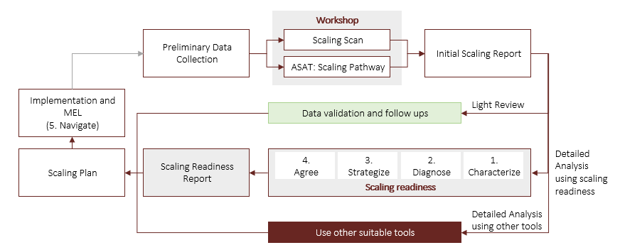 Out of these tools, Scaling readiness, Scaling scan and the Agricultural scalability assessment tool (ASAT) have been identified as most suitable for the ILRI/CGIAR operational context. The tools focus on assessing agricultural innovations, are conceptually relatively developed with supporting documentation and approaches and have feasible workload and resource demands.